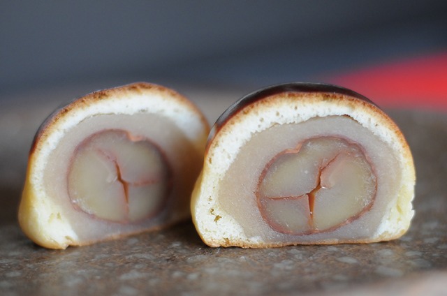栗がまるまる一個入ったどらやき。 一方堂特製の味付けをされた栗は最高です。